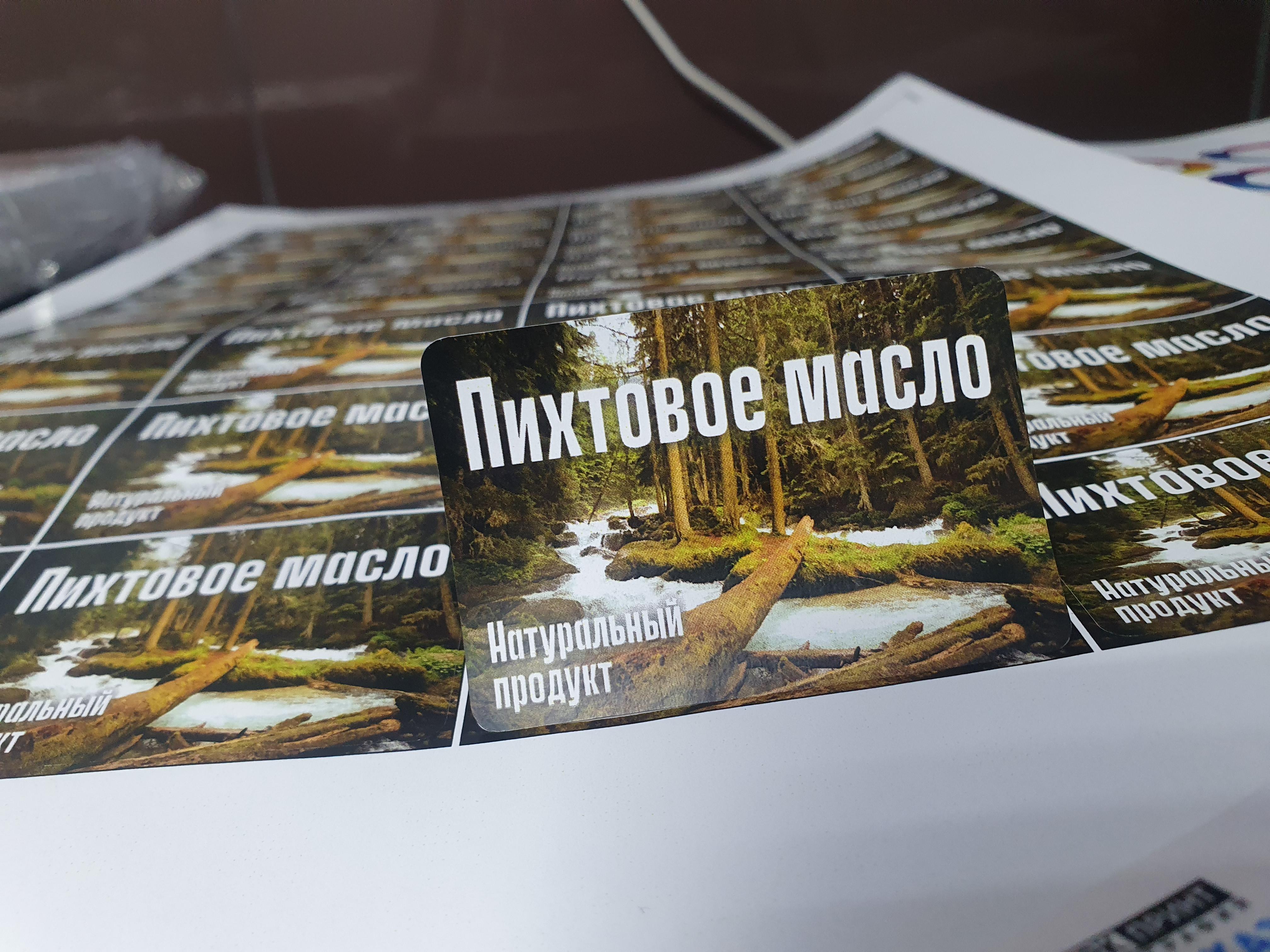 Цветная лазерная печать на бумажной самоклейке, а так же на самоклеющейся белой и прозрачной влагостойкой пленке пвх. Максимальный формат печати SRA3.